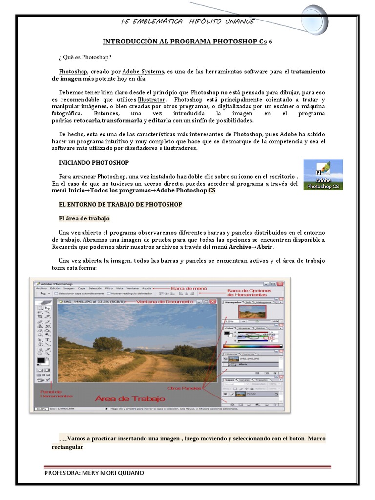 INTRODUCCIÒN AL PROGRAMA PHOTOSHOP Cs 6 ACTUAL.docx | Procesamiento de imágenes | Point and Click