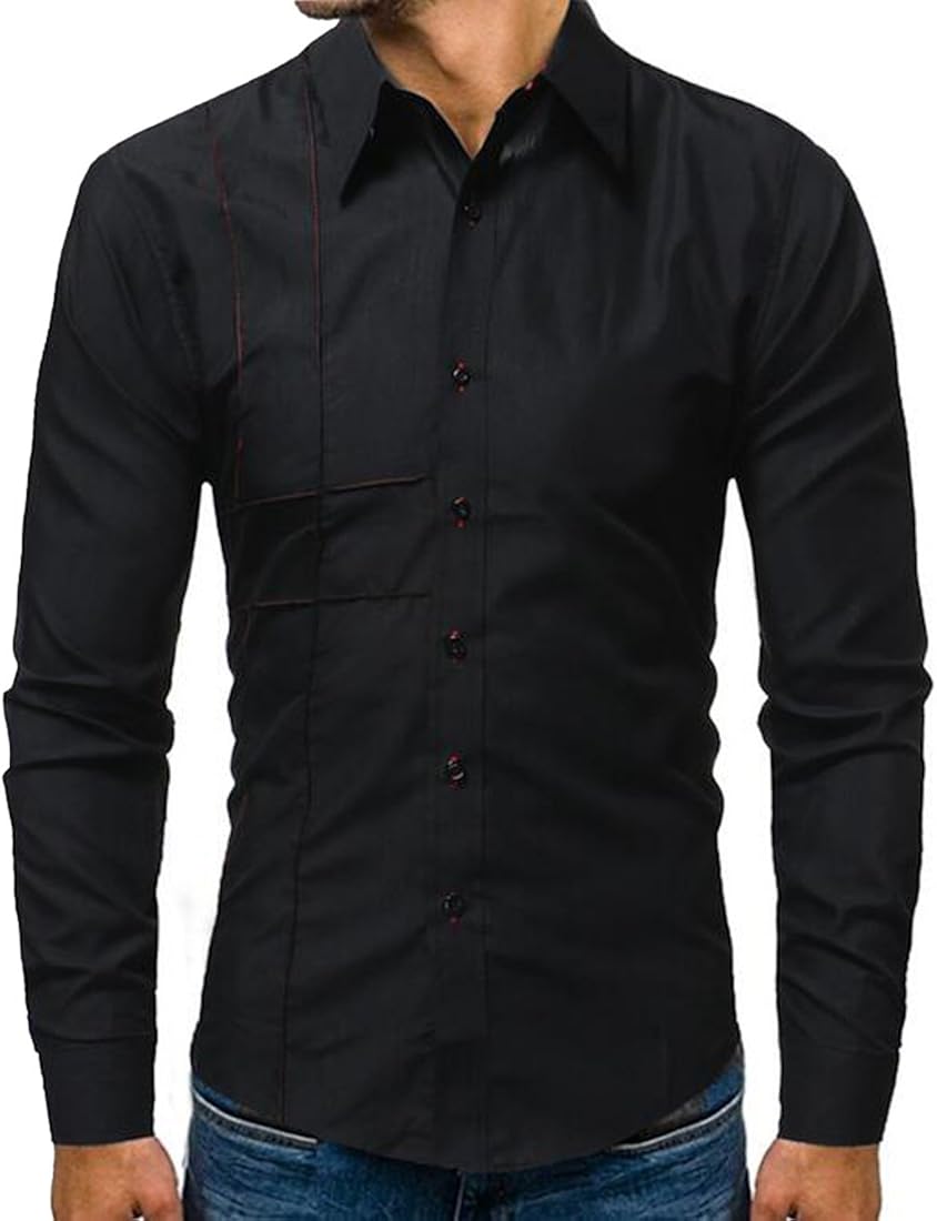 Fashion Men S Luxury Slim Fit Casual Shirts Long Sleeve Formal Dress Shirt Tops Ebay